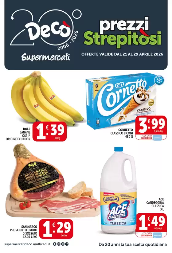 Decò Italia è una catena di supermercati presente nel centro-sud Italia, nata dalla collaborazione tra Multicedi e Gruppo Arena. I supermercati Decò offrono prodotti freschi e convenienti, con unattenzione particolare verso le eccellenze regionali e nazionali. Le sue offerte vantaggiose e i prezzi scontati sono accessibili a tutti. Scopri tutte le offerte Decò sul volantino presente su Tiendeo e approfitta oggi di promozioni vantaggiose su un’ampia gamma di articoli.