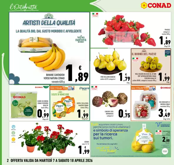 Conad, acronimo di Consorzio Nazionale Dettaglianti, è una società cooperativa fondata a Bologna e attiva dal 1962. Ad oggi Conad presenta oltre 3.000 punti vendita e 5.000 prodotti in assortimento, garantendo ogni giorno qualità e prezzi convenienti alla sua clientela. Conad offre format per ogni esigenza da iper e supermercati a punti vendita di minori dimensioni come Margherita Conad e Todis. Inoltre la clientela Conad può usufruire del servizio di spesa online HeyConad, che permette di ricevere l’ordine direttamente a casa tramite consegna a domicilio o ritirarlo presso uno dei punti vendita. Consulta l’anteprima del volantino Conad disponibile su Tiendeo e scopri maggiori informazioni su promozioni e servizi della catena.