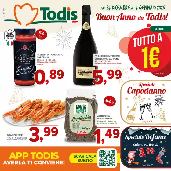 Todis è una catena italiana di supermercati discount, presente soprattutto nel Centro Italia, nata all’interno del mondo Conad. Il catalogo Todis coniuga l’alta qualità dei prodotti ad un vasto assortimento composto da oltre 3.700 referenze di prodotti anche a marchio proprio. Non mancano nell’offerta i prodotti etnici, biologici, salutistici, vegani e per celiaci.