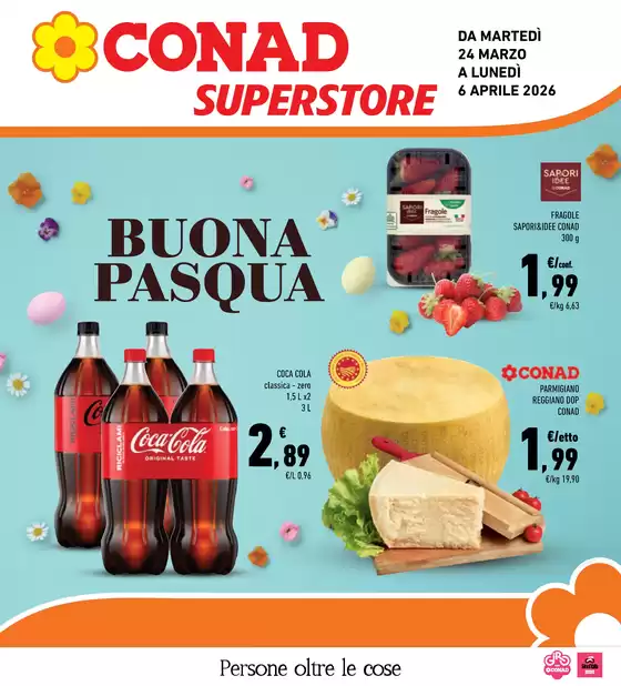 Conad è una catena italiana di supermercati e ipermercati che opera nel settore della Grande Distribuzione Organizzata, formata da 8 gruppi cooperativi. Il catalogo Conad Superstore coniuga la facilità della spesa vicino casa con la completezza dell’assortimento ed i maggiori servizi di aree commerciali ampie. Comprende prodotti alimentari, bevande, articoli per l’igiene e per la casa, hobby e giardinaggio. Le linee di articoli a marchio proprio spaziano dalle eccellenze di Sapori&Dintorni, ai prodotti Conad Kids per il bambino, Conad Verso Natura, Alimentum e Piacersi.