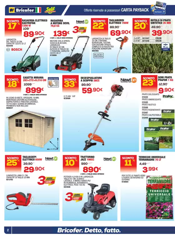 Bricofer è un’azienda italiana leader nel settore del fai da te grazie a una vasta offerta e a una gamma di servizi completa. Il catalogo Bricofer comprende marchi prestigiosi e prodotti esclusivi ai prezzi più convenienti con un assortimento che spazia in diversi settori merceologici: ferramenta, elettricità, giardinaggio, casa, vernici, bagno, illuminazione, clima e riscaldamento, pets, auto e moto.