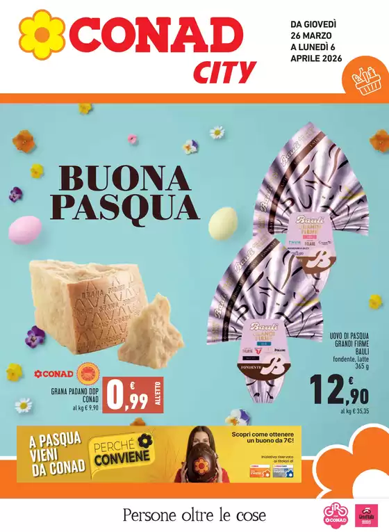 Conad è una catena italiana di supermercati e ipermercati che opera nel settore della Grande Distribuzione Organizzata, formata da 8 gruppi cooperativi. Il catalogo Conad City coniuga la facilità della spesa vicino casa con la completezza dell’assortimento e la qualità. Comprende prodotti alimentari, bevande, gastronomia, ortofrutta pronta alluso, panetteria e prodotti tipici regionali. Le linee di articoli a marchio proprio spaziano dalle eccellenze di Sapori&Dintorni, ai prodotti Conad Kids per il bambino, Conad Verso Natura, Alimentum e Piacersi.