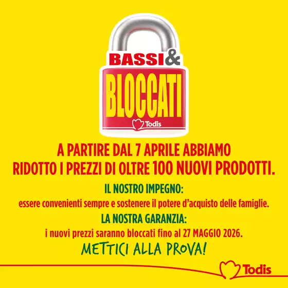 Todis è una catena italiana di supermercati discount, presente soprattutto nel Centro Italia, nata all’interno del mondo Conad. Il catalogo Todis coniuga l’alta qualità dei prodotti ad un vasto assortimento composto da oltre 3.700 referenze di prodotti anche a marchio proprio. Non mancano nell’offerta i prodotti etnici, biologici, salutistici, vegani e per celiaci.